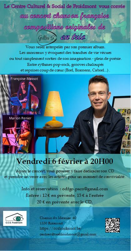 A l’occasion de sa venue au C.C.S. de Froidmont, Gilles S. sera accompagné de ses musiciennes :